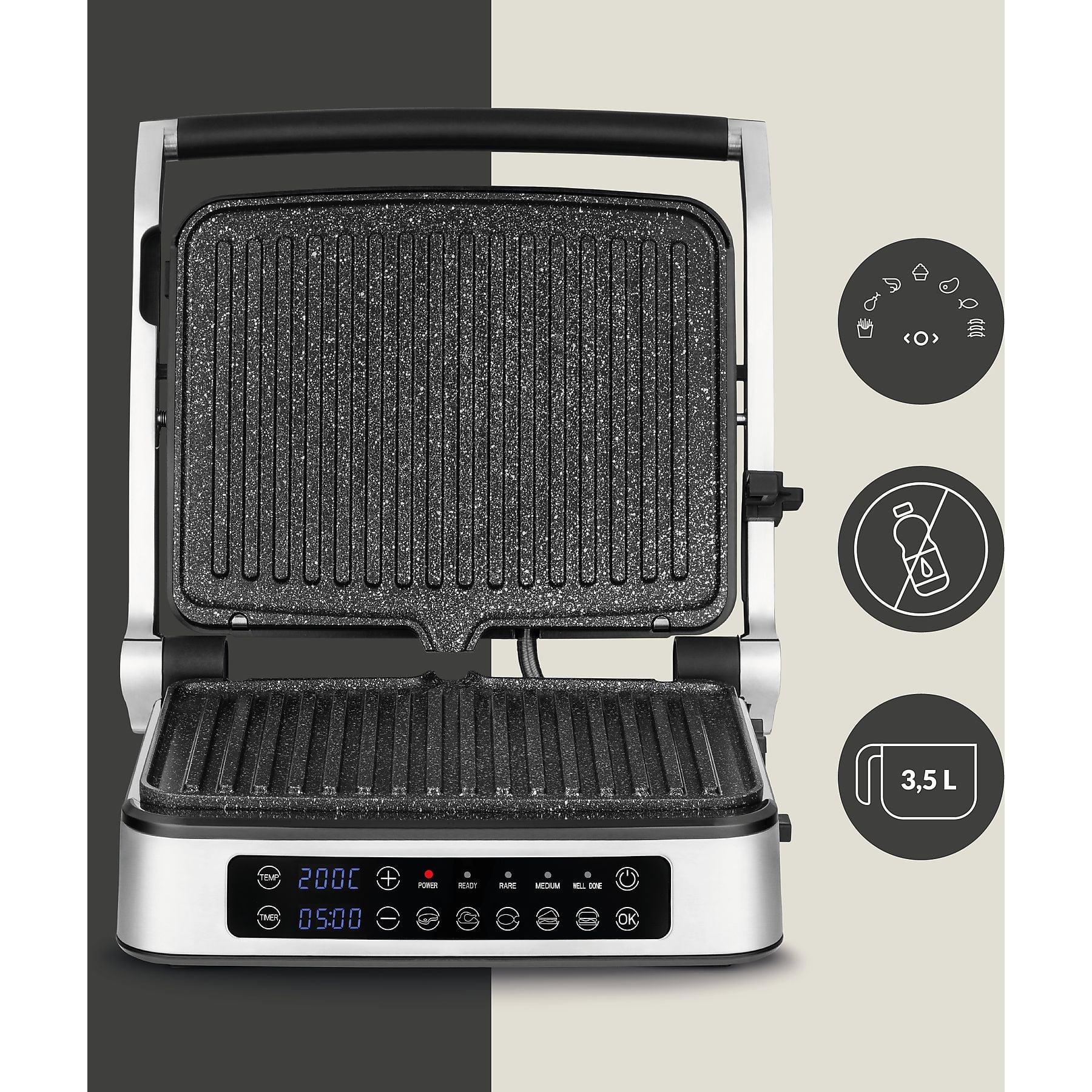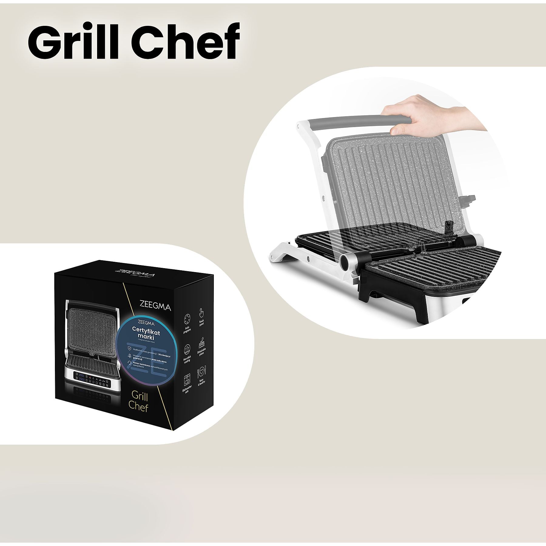ZEEGMA el. roštilj, toster, 2100W, 5 programa, 180, LED, GRILL CHEF 2.0 SILVER
