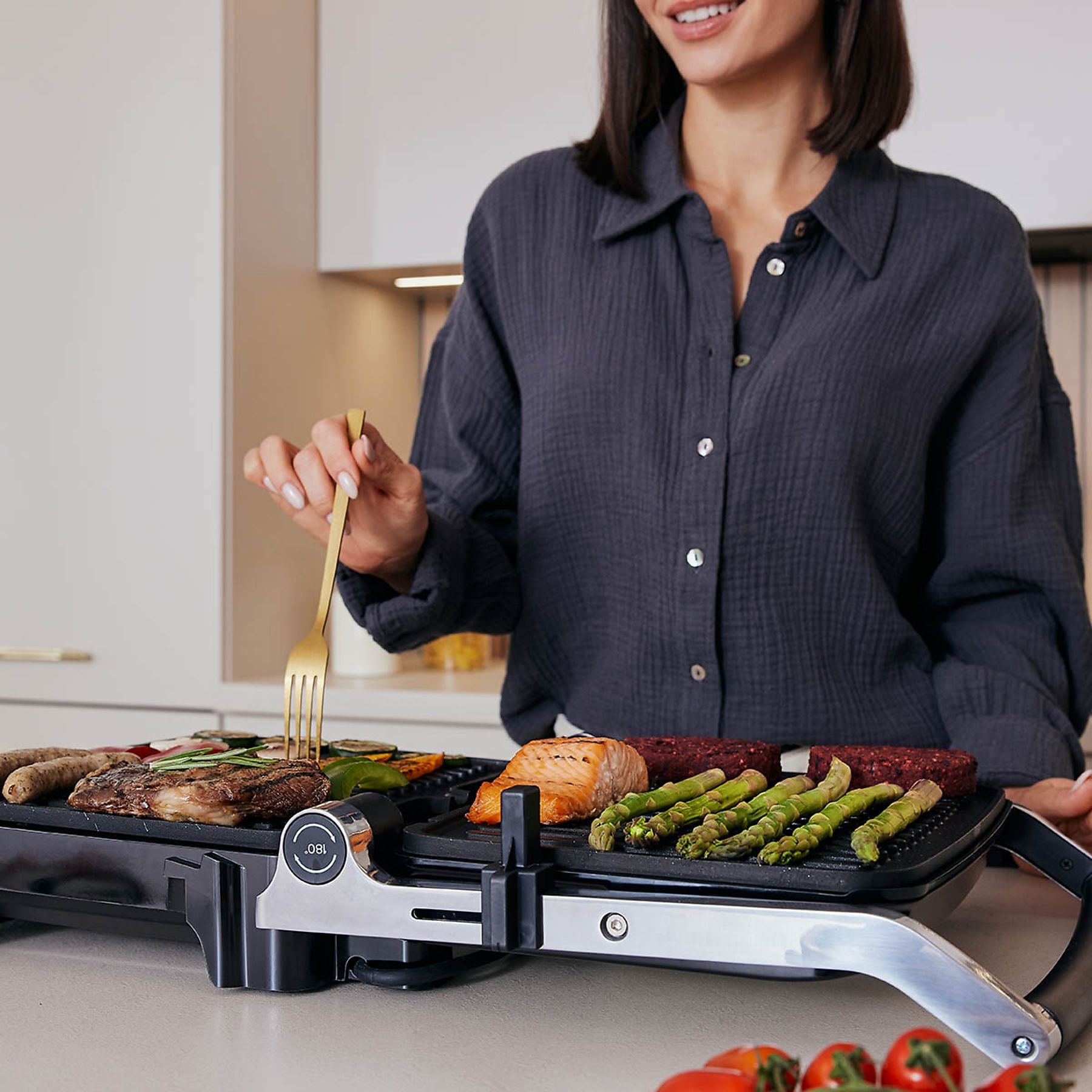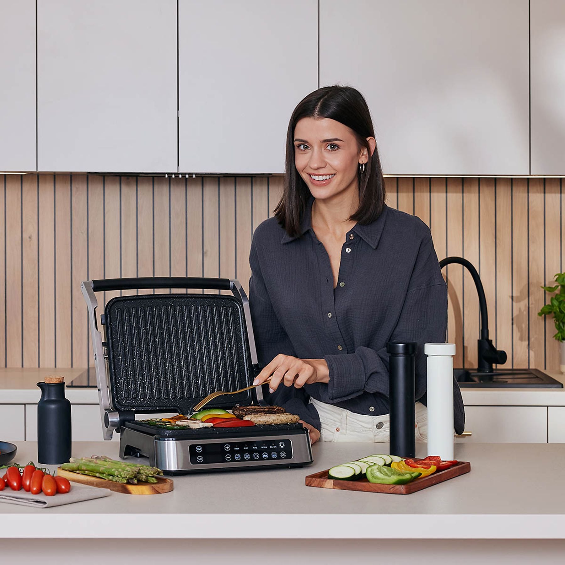 | Opis: | Zeegma Grill Chef - Ovo je vaš novi, nezamjenjivi kuhinjski pomagač! Kuhajte kao kuhar! Možete li pripremiti ukusan odrezak bez kulinarske diplome? Apsolutno! Sa Zeegma Grill Chefom možete svojoj obitelji poslužiti ukusna jela od piletine i ribe, sočne hamburgere ili sendviče. Zahvaljujući 5 unaprijed postavljenih automatskih programa, izbor jela je ogroman. Nezamjenjivi 2-u-1 uređaj Zeegma Grill Chef je električni kontaktni roštilj i toster za sendviče s izlaznom snagom od 2100 W. Ovaj kompaktni model ne zauzima puno prostora u vašoj kuhinji. Također ga je lako nositi sa sobom na putovanja. Ako radije kuhate hranu na roštilju, možete ga otvoriti za 180 stupnjeva i iskoristiti veliku površinu za roštiljanje (1345 cm2). Što još možete pripremiti? Vaša mašta je jedina granica. - 5 unaprijed postavljenih automatskih programa za odrezak, pileće batke, ribu, sendvič i hamburger - Uklonjive keramičke grijaće ploče s premazom (ploče su neprianjajuće i otporne na habanje) - 2 u 1 – Kontaktni roštilj s tosterom za sendviče - Zeegma Grill Chef se može otvoriti za 180° – velika površina za roštiljanje veličine 1345 cm2. - Upravljanje LED zaslonom dodirom - Podešavanje temperature s određivanjem željene temperature grijanja - Timer – Mogućnost postavljanja timera za roštiljanje - Podesivi kut otvaranja – pečenje tanjih i debljih komada na roštilju - posuda za kapanje - Svjetleće diode koje pokazuju kada je postignuta određena temperatura - Zvučni signal kada se postigne željena temperatura i nakon završetka zadatka (roštiljanje) - Grijaće ploče i posuda za kapanje mogu se prati u perilici posuđa. - Gornja ploča je izrađena od nehrđajućeg čelika. - Mogućnost podešavanja razine kuhanja – 3 načina: slabo, srednje, dobro (krvavo, ružičasto, potpuno kuhano) Jednostavno održavanje Grijaće ploče s premazom Uklonjive keramičke grijaće ploče s premazom otpornim na habanje i sprječava lijepljenje. Prati u perilici posuđa Grijaće ploče i posuda za kapanje mogu se prati u perilici posuđa. Roštiljanje i pečenje Podesivi kut otvaranja Zahvaljujući ovoj značajki, možete peći i tanje i deblje komade svoje omiljene hrane, a dvije grijaće ploče osiguravaju ravnomjerno pečenje. 3 razine kuhanja Zeegma Grill Chef vam nudi 3 razine kuhanja, i to: slabo, srednje i dobro pečeno, osiguravajući da je vaša hrana pripremljena točno onako kako želite. Idealna temperatura Zahvaljujući podesivoj temperaturi, možete odabrati bilo koju željenu temperaturu zagrijavanja. Nadalje, ugrađeni timer omogućuje vam postavljanje vremena pečenja na roštilju. Možete uživati u svojoj omiljenoj hrani i zaboraviti na to da će zagorjeti. Uređaj koristi LED za signaliziranje da je postignuta postavljena temperatura. Osim toga, zvučni signal označava da je postignuta željena razina temperature ili da je njegov zadatak završen. Specifikacija BOJA: siva TEHNIČKI DETALJI: Snaga: 2100 W Kut otvaranja: 105, 180 Automatski programi: 5 Težina: 4 kg POSTAVI: Električni kontaktni roštilj Uklonjive grijaće ploče s Ceralon keramičkim premazom koji se ne lijepi Korisnički priručnik DIMENZIJE: Dimenzije uređaja: 35,6 x 34,8 x 15,5 cm Grijaće ploče: 29 x 23,2 cm JAMSTVO 24 MJESECI (Viva-net d.o.o.) |