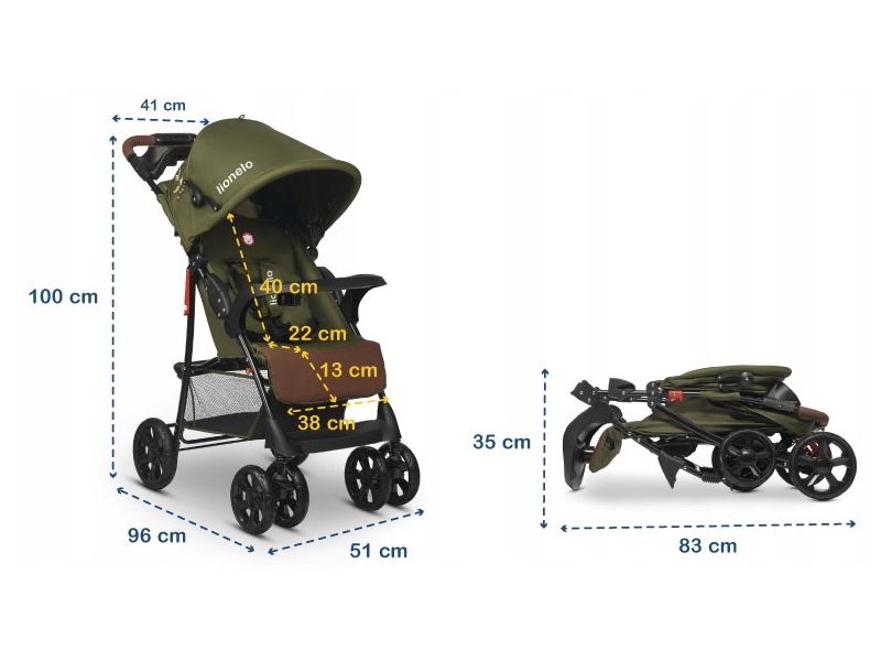 Lionelo dječja kolica EMMA PLUS zelena-smeđa + torba za mamu