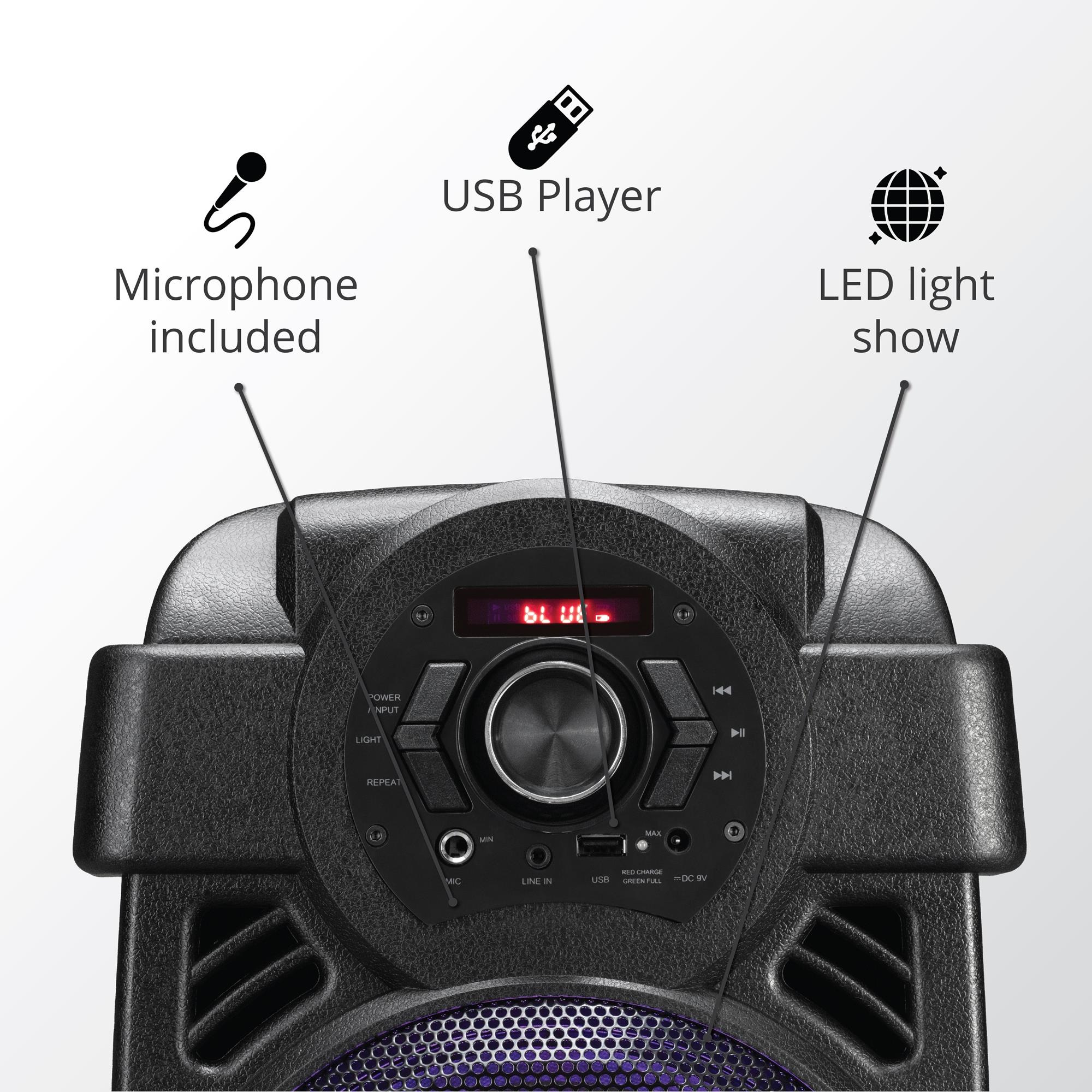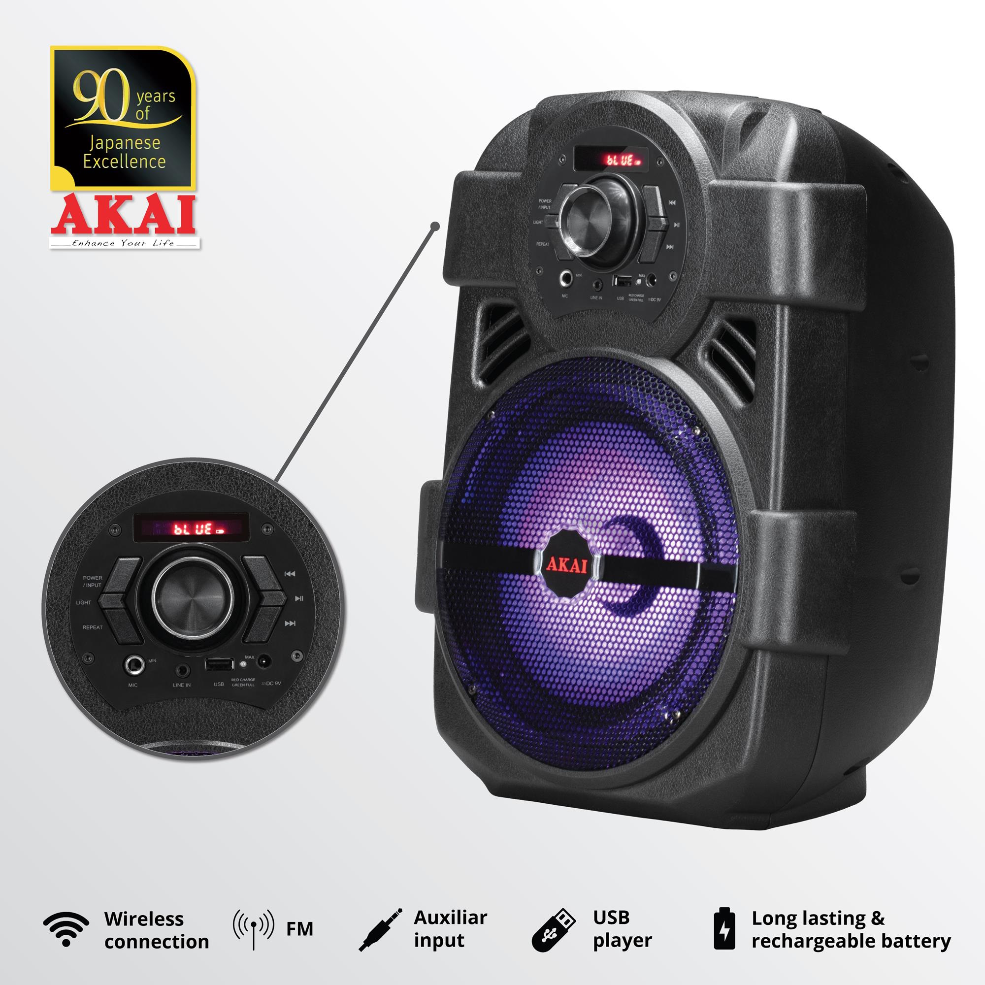 AKAI karaoke 10W, FM, BT, USB, LED svjeta, baterija, crni ABTS-808L