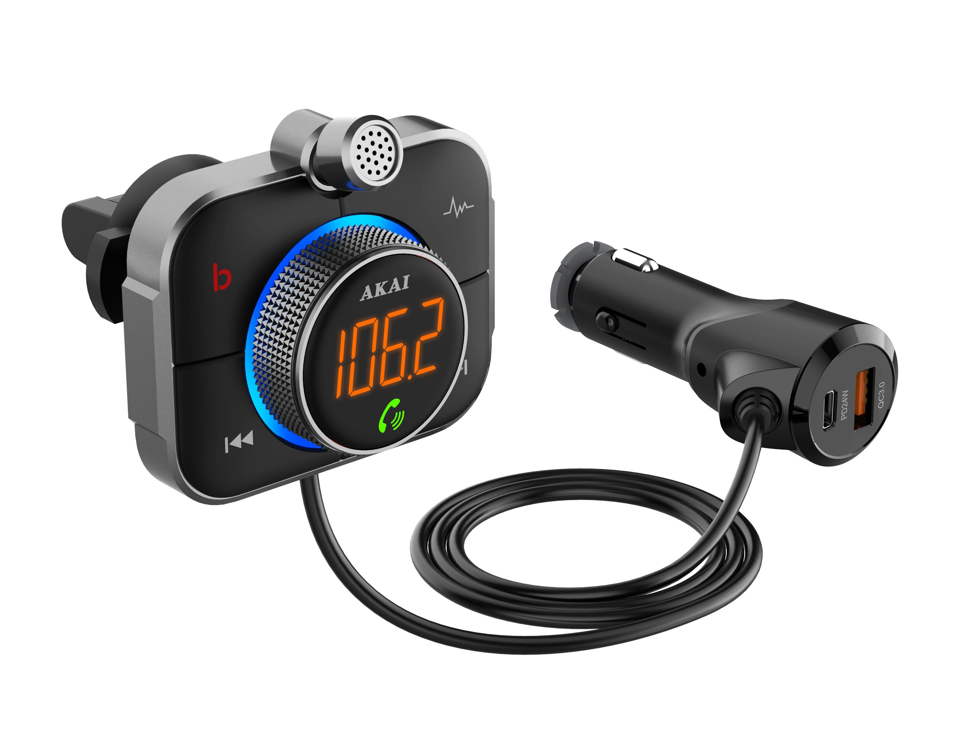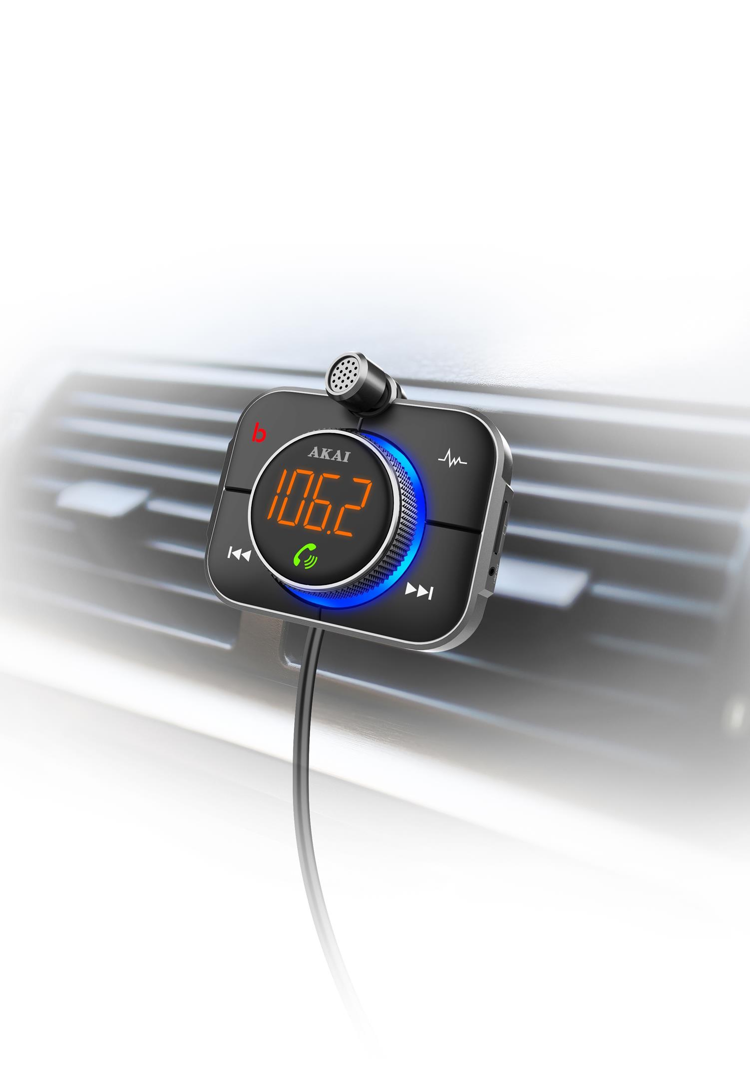 AKAI FM transmiter PRO, USB+C punjač, BT, HandF, microSD, 12-24V, crni FMT-95BT