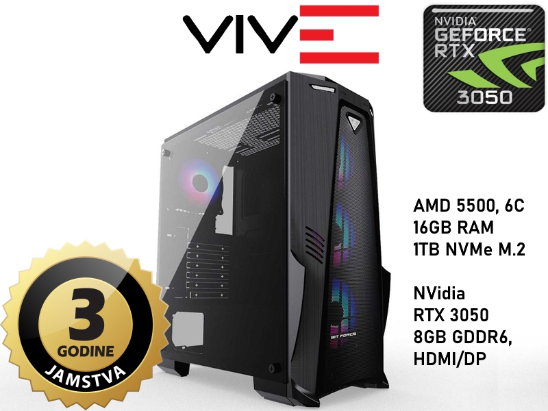 Računalo viv-E Gamer Force I, Ryzen 5, 16GB DDR4, 1TB NVMe SSD, RTX 3050