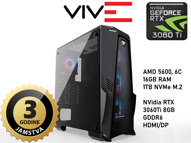 Računalo viv-E Gamer Big Boss I, Ryzen 5, 16GB DDR4 , 1TB NVMe SSD, RTX 3060Ti