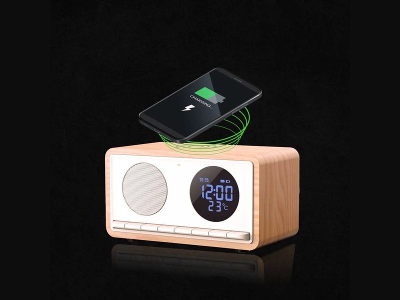 MANTA budilica FM, BT, QI punj, veliki zaslon, microSD, baterija, bijeli RDI912W