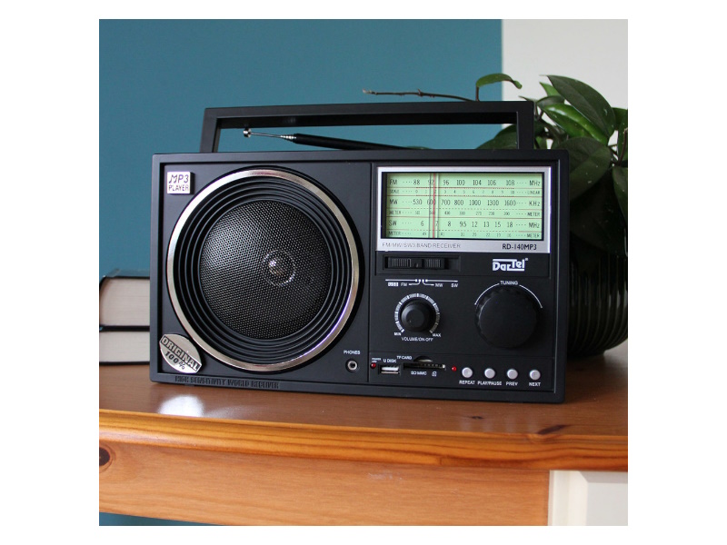 Dartel radio FM, MW, SW, analogni, AC ili klasične baterije, crni RD-140MP3